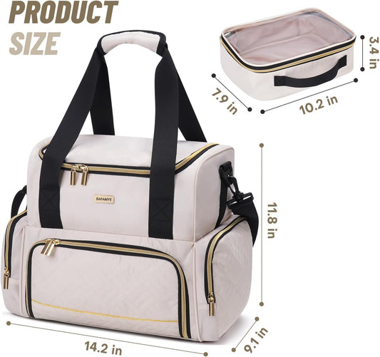 Makeup Bag Vanity Case Cosmetic Bag with Removable Divider Travel Toiletry Bag for Women Portable Make up Box Organizer, Beige and White