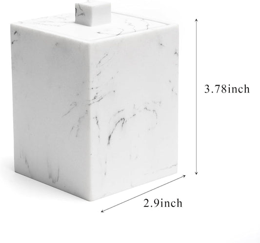 Bathroom Qtip Holder, Resin Cotton Swab Holder with Lid Qtip Holder Dispenser for Cotton Ball Bath Salts Storage Christmas Birthday Anniversary, Matte White