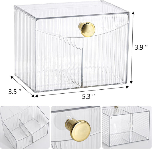 Tbestmax Qtip Holder Dispenser 2-Section Clear Bathroom Organizer 2 Grids Cotton Swab/Pad/Ball Holder Container Cosmetics Storage for Vanity
