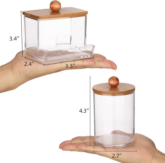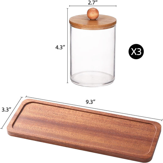 Tbestmax Qtip Holder with Vanity Tray, Clear Bathroom Containers Dispenser for Storage Cotton Swab/Ball/Pad Holder Wood Lids