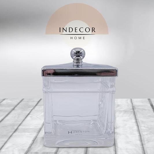 H Halston Apothecary Glass Cotton Jar Holder for Qtips, Cotton Balls, Floss, Storage Canister, Bathroom Organization, With Matte Black 304L Stainless Steel Lid, Makeup Vanity Organizer