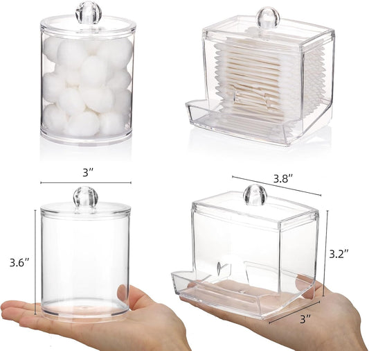 Clear Acrylic Qtip Holder With Lid Cotton Balls Swab Organizer,Square Q Tip Storage, Floss Picks, Bath Salts, Cotton Wab Holder,Home Bathroom Decor (DP011)