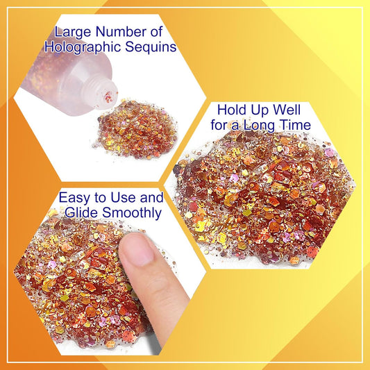 Maple Red Face Body Hair Glitter Gel for Women and Kids, Holographic Chunky Color Changing Glitter Gel Lasting Sparkling Shimmer Makeup for Christmas Party Festival Rave Accessories, 1oz