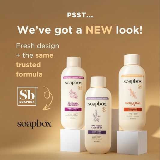 Soapbox Body Wash, Oatmilk & Lavender Liquid Body Wash, Moisturizing Soap with Shea Butter, Vegan Duo Pack of 2 Soap Bottles, 20oz Each