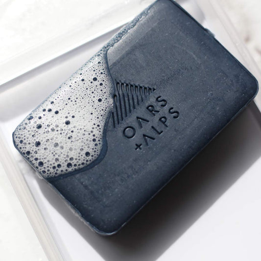 Oars + Alps Blue Charcoal Exfoliating Bar Soap for Men, Deep Cleaning & Exfoliating Soap, Dermatologist Tested & Made with Natural Clean Ingredients, All Skin Types, Travel Size, 1pk, 6oz