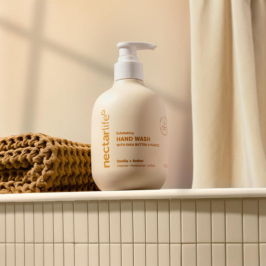 Nectar Life Exfoliating & Moisturizing Hand Wash, Volcanic Pumice for Hand Scrub, Shea Butter Softens Hands, Clean Vegan Ingredients, Vanilla Scent
