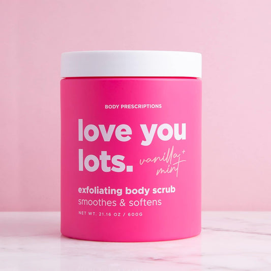 Body Prescriptions Exfoliating Body Scrub – Body Cleanser for Nourished, Ultra-Smooth Skin, Vanilla and Mint (Love You Lots)