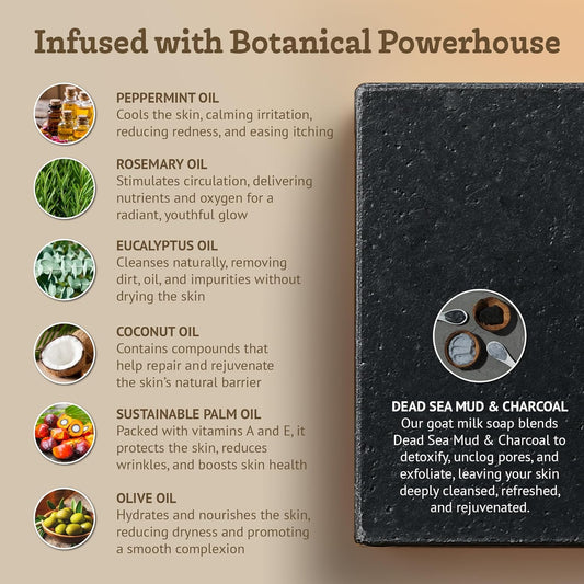 Southern Natural Activated Charcoal Soap Bar (3 Pack) Face and Body Soap For Sensitive Skin With Dead Sea Mud, Goat Milk & Peppermint Essential Oil
