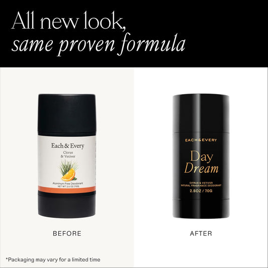 Each & Every Aluminum Free Deodorant for Women & Men, Citrus & Vetiver - All Natural Deodorant for Sensitive Skin, EWG Verified - Clean, Baking Soda-Free, Plant-Based Fragrance - 2.5oz, 2 Pack
