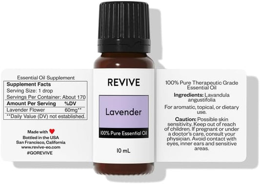 Lavender Essential Oil by Revive Essential Oils - 100% Pure Therapeutic Grade, for Diffuser, Humidifier, Massage, Aromatherapy, Skin & Hair Care