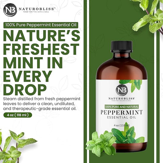 Naturopathy Peppermint Essential Oil, Natural Therapeutic Grade, Premium Quality Peppermint Oil, 4 fl. Oz - Perfect for Aromatherapy and Relaxation