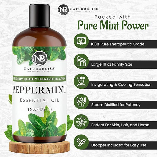 Naturopathy Peppermint Essential Oil, Therapeutic Grade, Premium Quality Perfect for Aromatherapy (16oz, Peppermint)
