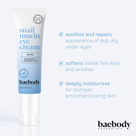 Baebody Snail Mucin Eye Cream (30 ml/1.06 fl oz) - Anti-Aging Eye Cream for Dark Circles and Dry Skin - Snail Mucin Serum with Peptides and Hyaluronic Acid