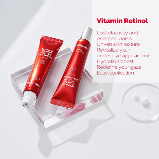 PS.PRETTYSKIN Roll On Eye Cream with Vitamin A and Stainless Steel ball Tip- Under Eye Roller Cream for Elasticity Wrinkles Puffiness Fine Lines-Korean eye cream 30ml/1.01fl.oz. (Retinol)