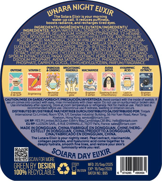 Lunara Hydrogel Eye Mask, 28 Pairs Under Eye Patches for Puffy Eyes Dark Circles Wrinkles with Caffeine, Vitamin C, Niacinamide, Pearl+ Day & Night Activation Elixirs Eye Serum (2×3ml)