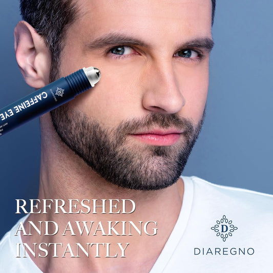 Caffeine eye cream for dark circles: Under eye serum for puffiness – with cooling roller for wrinkles