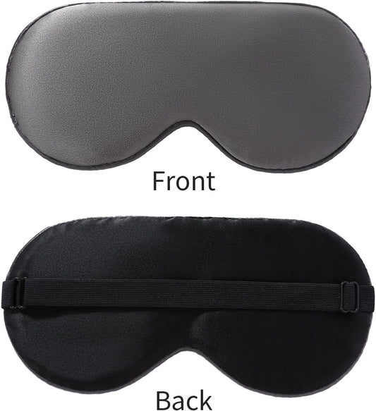 2-Pack 100% Real Natural Silk Eye Mask, Silk Sleeping Mask, Shade Puffy Eye Gift with Adjustable Straps, Sleep Eye Mask, SHJINJU Eye Mask Shade (Black and Dark Grey)