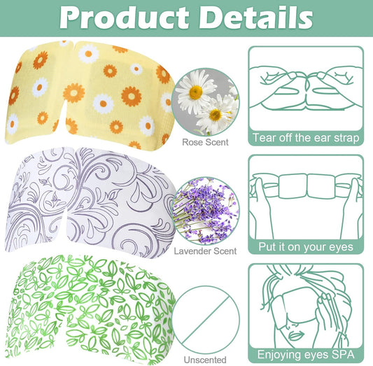 48 Packs Steam Eye Mask Disposable Self Heating Eye Mask for Dry Eyes Spa Warm Sleep Eye Mask for Home Office Travel Eyestrain Relieve (Unscented, Lavender, Chamomile)
