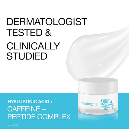 Neutrogena Hydro Boost + Eye Cream for Dark Circles & Puffiness, Under Eye Cream with Caffeine, Hyaluronic Acid and Peptides, Fragrance Free, 0.5 oz
