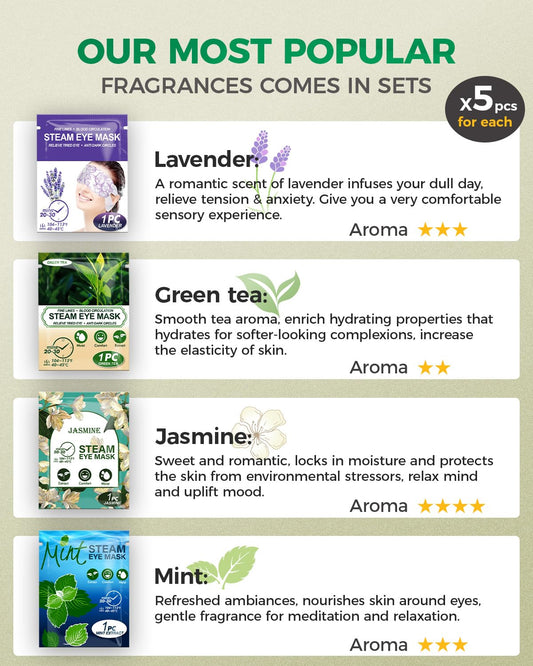 Steam Eye Mask, 20 Packs Heated Eye Mask Warm Compress for Eyes, Disposable Self Heating Eye Mask for Sleep, Spa, Travel Essentials & Relaxation Gifts for Women, Men (Green Tea)