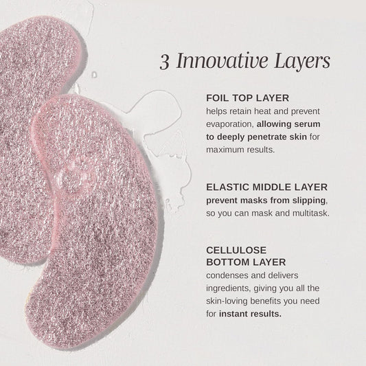 Wander Beauty Baggage Claim - Rose Gold Foil Under Eye Patches For Dark Circles and Puffiness - Under Eye Mask Depuffs & Firms - Brightening Eye Mask for Under Eye Bags (6 Pairs)