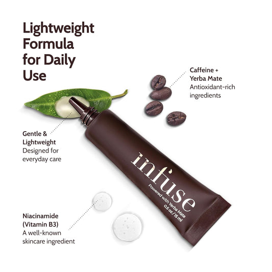 Infuse Eye Cream for Dark Circles with Good Molecules and Hyaluronic Acid Serum, Reduces Puffiness, Fine Lines, Antioxidant-Rich Yerba Mate for Day & Night Use, Ideal for Middle-Aged Women