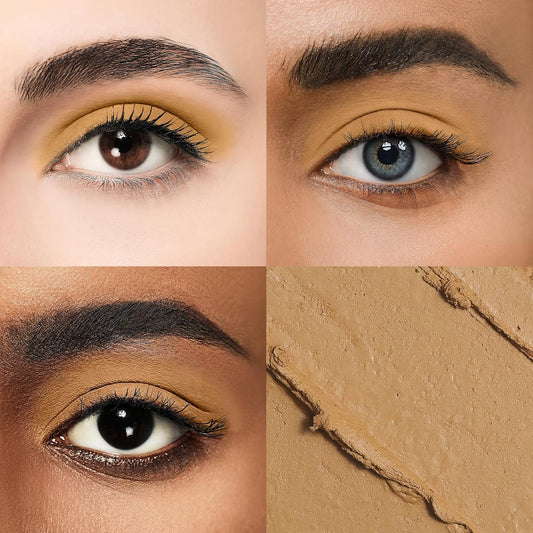 Cream Waterproof Hypoallergenic Eyeshadow Stick, long wear Metallic Glitter Matte Eye Shadow Pencil With Makeup Brush, Eye Brightener, 53 Gold Metallic