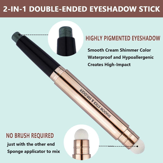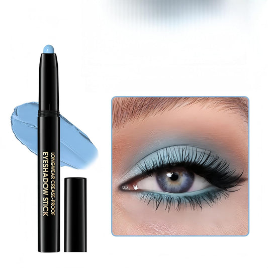 2 in 1 blue Eyeshadow stick and Sponge Makeup Brush, Smooth Cream Shimmer Shadow Pencil Long Lasting Waterproof Eye Shadow Highlighter Stick Makeup , Hypoallergenic Eyeshadow, Highlighter Eye Liner