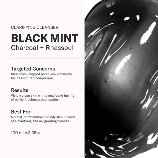 Odacité Facial Cleanser with Foam - Black Mint Activated Charcoal & Rhassoul Clay Glow Recipe - Facial Moisturizer with Deep Cleanse for Gentle Face Wash to Remove Dirt & Oil, 3.38 fl. oz.