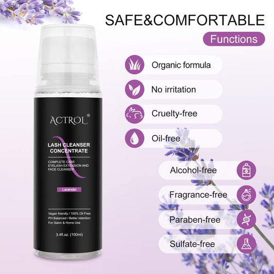 Eyelash Cleanser Concentrate 100ml Lavender Professional Lash Shampoo Foaming Cleanser DIY Paraben & Sulfate Free Non-lrritating Wash for Extensions Lashes with Salon Home Care-Makes 20 Bottles