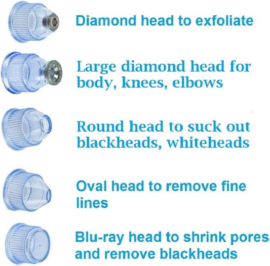 Microdermabrasion Machine - Appolus Premium Diamond Microdermabrasion Device Tool - 2 Diamond Tips - 5 Heads - Blackhead Blemishes Remover - Pores Fine Lines Minimizer