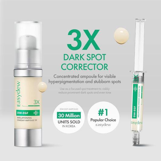 Easydew DW-EGF Melatoning Ampoule 3X - Hydrating Dark Spot Serum with Niacinamide & Glutathione for Uneven Skin - Fast Absorbing Day & Night Ampoule Korean Skin Care (Bottle 1.01 fl oz, EGF 3X)