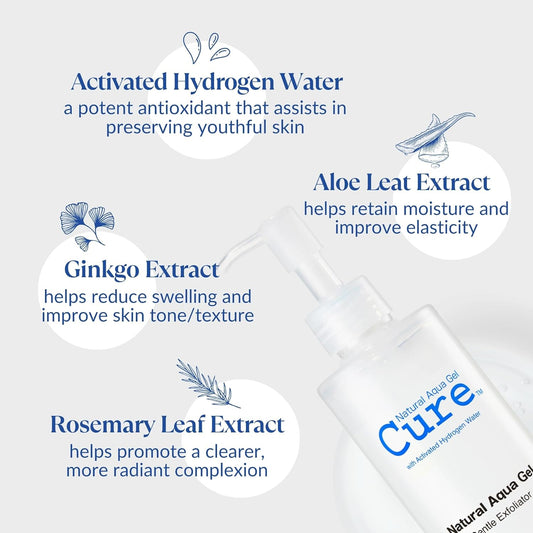 Cure by Toyo | Aqua Gel Gentle Exfoliator | Clear and Softer Skin | Non-Abrasive Face and Body Cleanser | Sensitive Skin | Big Size 8.82oz
