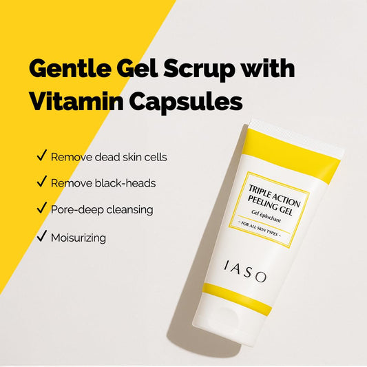 IASO Triple Action White Peeling Gel | Exfoliating Gel for Face, eep Pore Cleanse, Tone-Up Effect & Smoother Skin Texture, Korean Skin Care, 5.07 oz