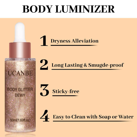 UCANBE Hydrating Body Glitter Dewy Highlighter Makeup Luminizer Drops Body Shimmer Liquid Face Glow Sparkles for Women Gifts (Rose Gold - 03)