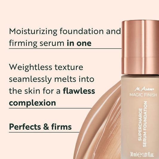 M. Asam MAGIC FINISH Supercharge Serum Foundation Warm Sand (1.01 Fl Oz) - Moisturizing Make Up & Firming Face Serum In One, Anti-aging CC Cream With Optimal Coverage & Hyaluronic Acid