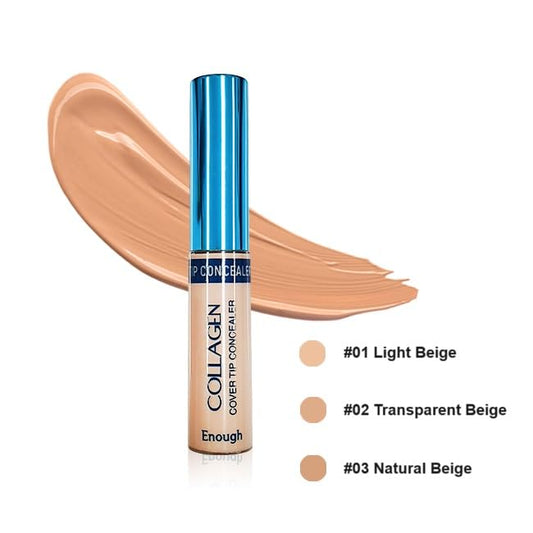 Enough Collagen Cover Tip Concealer - Full Coverage Concealer for Flawless Skin (#01 Light beige, 0.31oz / 9g)