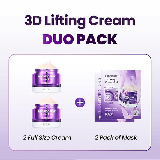 BIOHEAL BOH PROBIODERM™ 3D Lifting Cream Double Set + Cream Masks | Korean Anti-Aging Face Cream for Wrinkles & Skin Firming | Peptide Face Mask for Jawline Lift | Skincare Gift Set for Women & Men