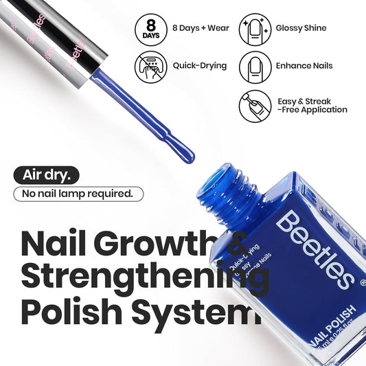 Beetles Glitter Nail Polish Set 7Pcs, Fast Drying & Long Lasting Red Blue Green Nail Polish with 2 IN 1 Base & Top Coat and Cuticle Serum 20ml, All-in-One Care 4th of July Nails Kit Gift Sets