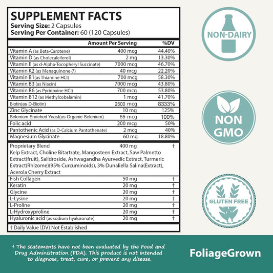 Hair Growth Supplements,Visibly Thicker Hair,Hair Growth Vitamins for Women and Men - 2 Month Supply(120 Capsules), White