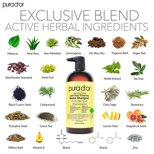 PURA D'OR Anti-Thinning Biotin Shampoo & Deep Moisturizing Conditioner Original Gold Label Set (16oz x2) Natural Earthy Scent, CLINICALLY TESTED Effective Results, Hair Thickening Product, Women & Men