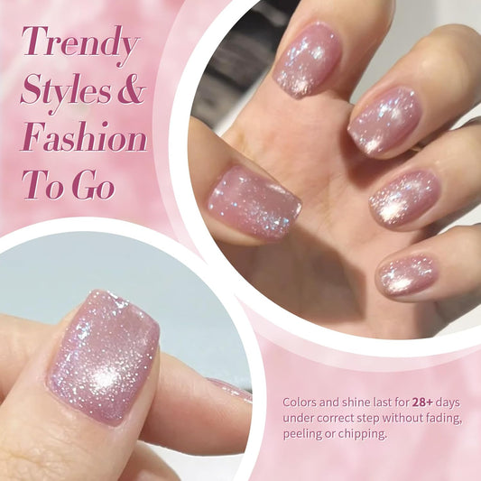 Double Rhythm Cat Eye Gel Polish Set 6 Colors Shimmer Glitter with Magnet Holographic Reflective Magnetic UV Gel Polish Art Kit (Glass Jelly Nude Pink 6-Kit 35)