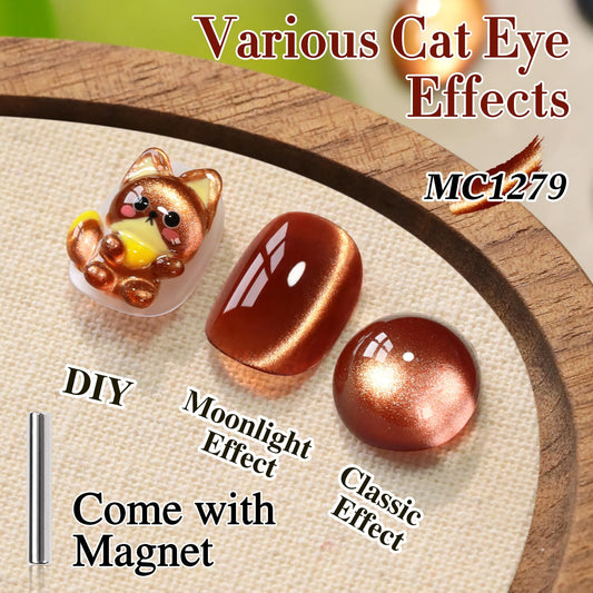 Double Rhythm 15ML Ice Glass Cat Eye Gel Polish with Magnet Holographic Glitter Shimmer Translucent Sheer Color Salon Soak Off Magnetic Nail at Home (Dark Orange-MC1127)