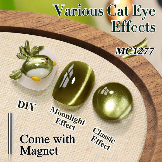 Double Rhythm 15ML Ice Glass Cat Eye Gel Polish with Magnet Holographic Glitter Shimmer Translucent Sheer Color Salon Soak Off Magnetic Nail at Home (Green Gold-MC1246)