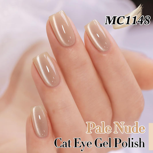 Double Rhythm 0.5 Oz Cat Eye Gel Polish with Magnet Same Color Same Bottle Holographic Glitter Shimmer Translucent Color Salon 15 ML Magnetic Nail Art (Pale Nude-MC1148)