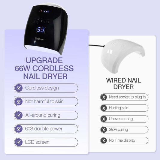 Cordless UV LED Nail Lamp, 66W Rechargeable Gel Nail lamp, Cordless UV Light for Gel Nails with Auto Sensor & 5 Timer for Home & Salon (Black)