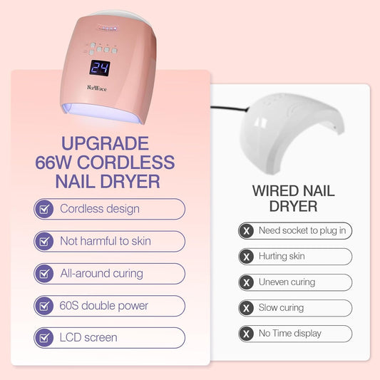 Cordless UV LED Nail Lamp, 66W Rechargeable Gel Nail lamp, Cordless UV Light for Gel Nails with Handle Auto Sensor & 5 Timer for Home & Salon (Pink)
