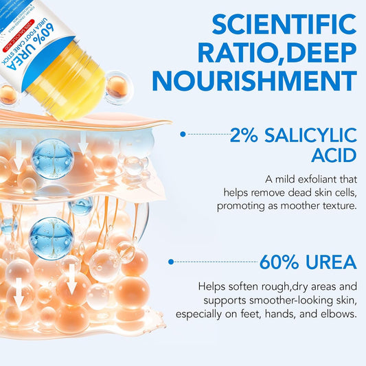 Urea Foot Care Stick, 60% Urea with 2% Salicylic Acid Foot Cream Moisturizer for Dry Cracked Feet, Knees, Elbows, Hands, Moisturizes and Hydrates the Dry Skin, Callus Remover & Skin Softener 1.41 oz