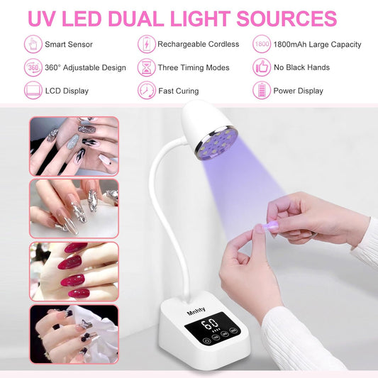 Delanie UV LED Nail Lamp Flash Cure Light - Rechargeable Cordless Gooseneck Nail Curing Light for Gel Polish Glue Extension, White