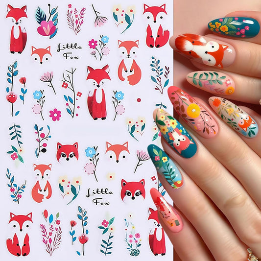 6Sheets Fall Leaf Nail Stickers Thanksgiving Day Fox Nail Stickers for Nail Art Cute Fox Flower Nail Decals 3D Self-Adhesive Cute Autumn Foxes Nails Supplies Nails Decoration for Women DIY Manicure